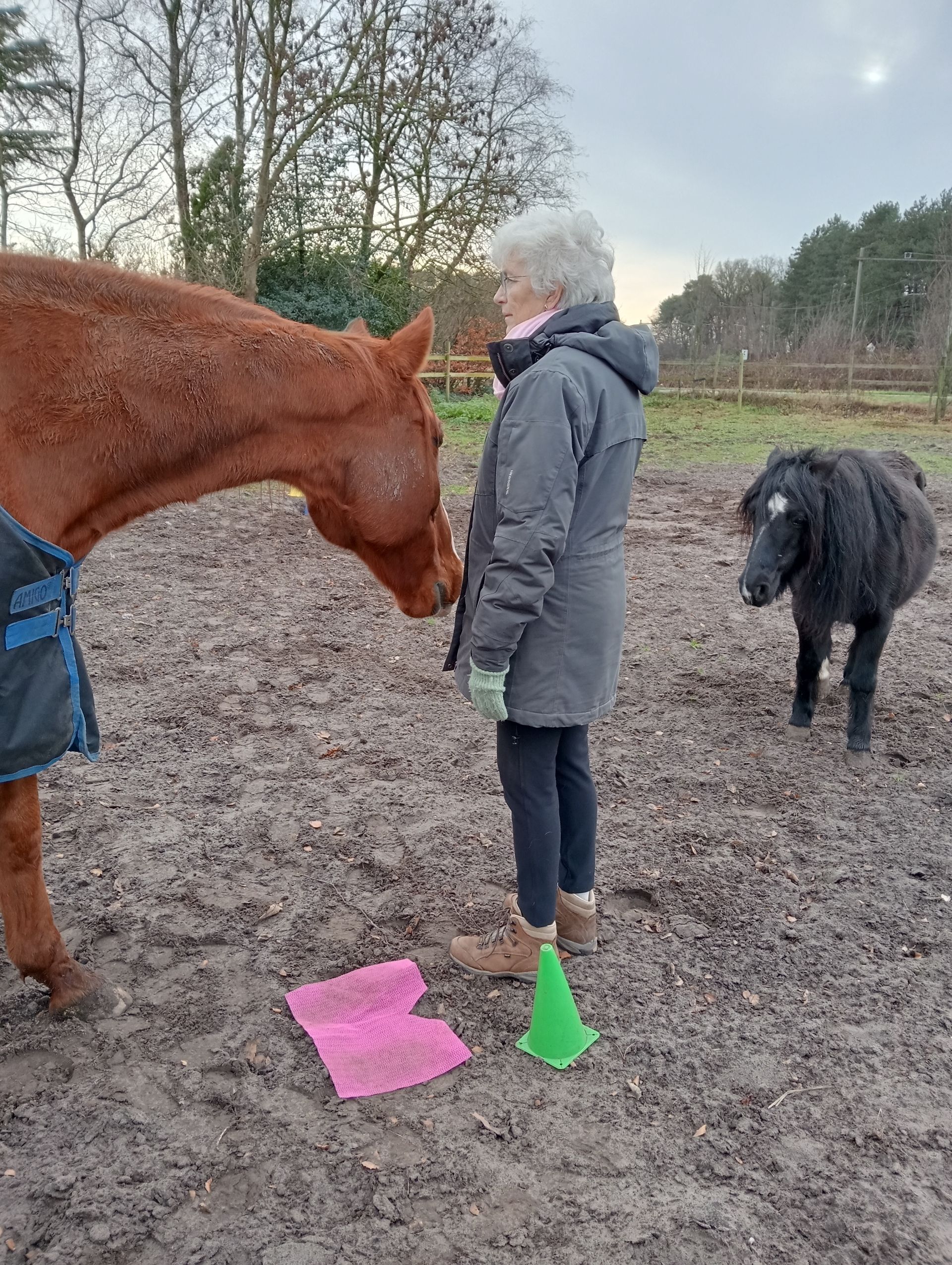Wat een spiegel, wat een inzichten ontstonden er nadat ik met knikkende knieën met Astrid het gebeurde doorgrondde. Ze stelde gerichte vragen en herhaaldelijk werd ik er even stil van. Ik stond paf over de inzichten. Soms, als ik een vraag moeilijk vond, maakte ik een grapje (= mijn escape), ze lachte dan mee, maar kwam weer terug met de vraag. Zo bleef de sessie en de uitwerking daarvan staan als een ... paard!